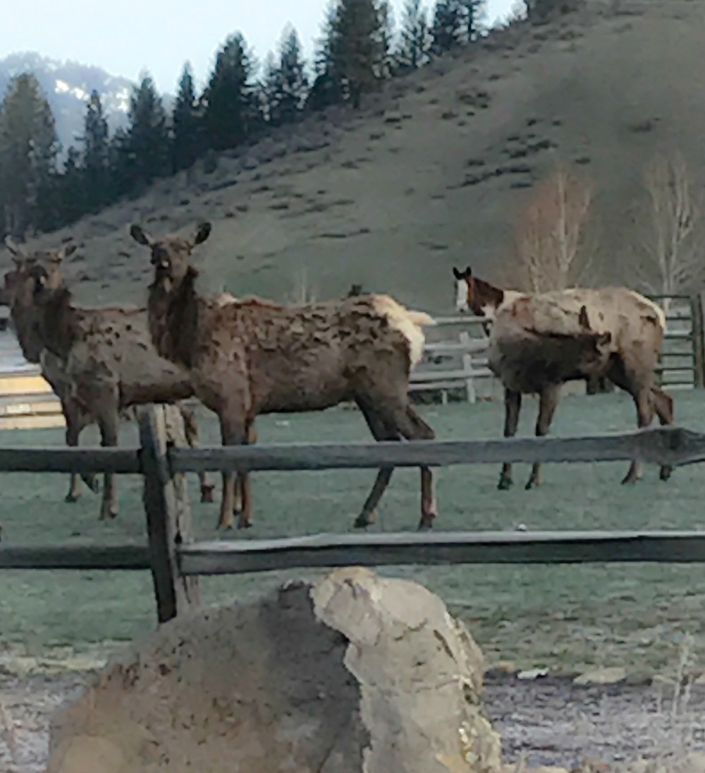 (None of these elk are Gertie; link to her story in the pic. Bonus points if you noticed the horsehead photobomb by Ely).