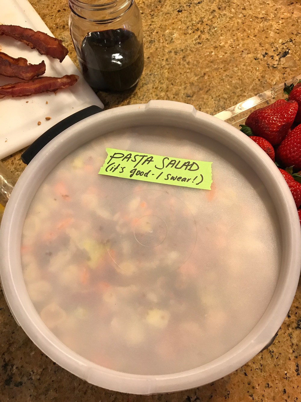 Meals need to be easy and quick. We all bring our own kitchens, but make-ahead meals are key when kids are involved. The easiest: Perfect Pasta Salad