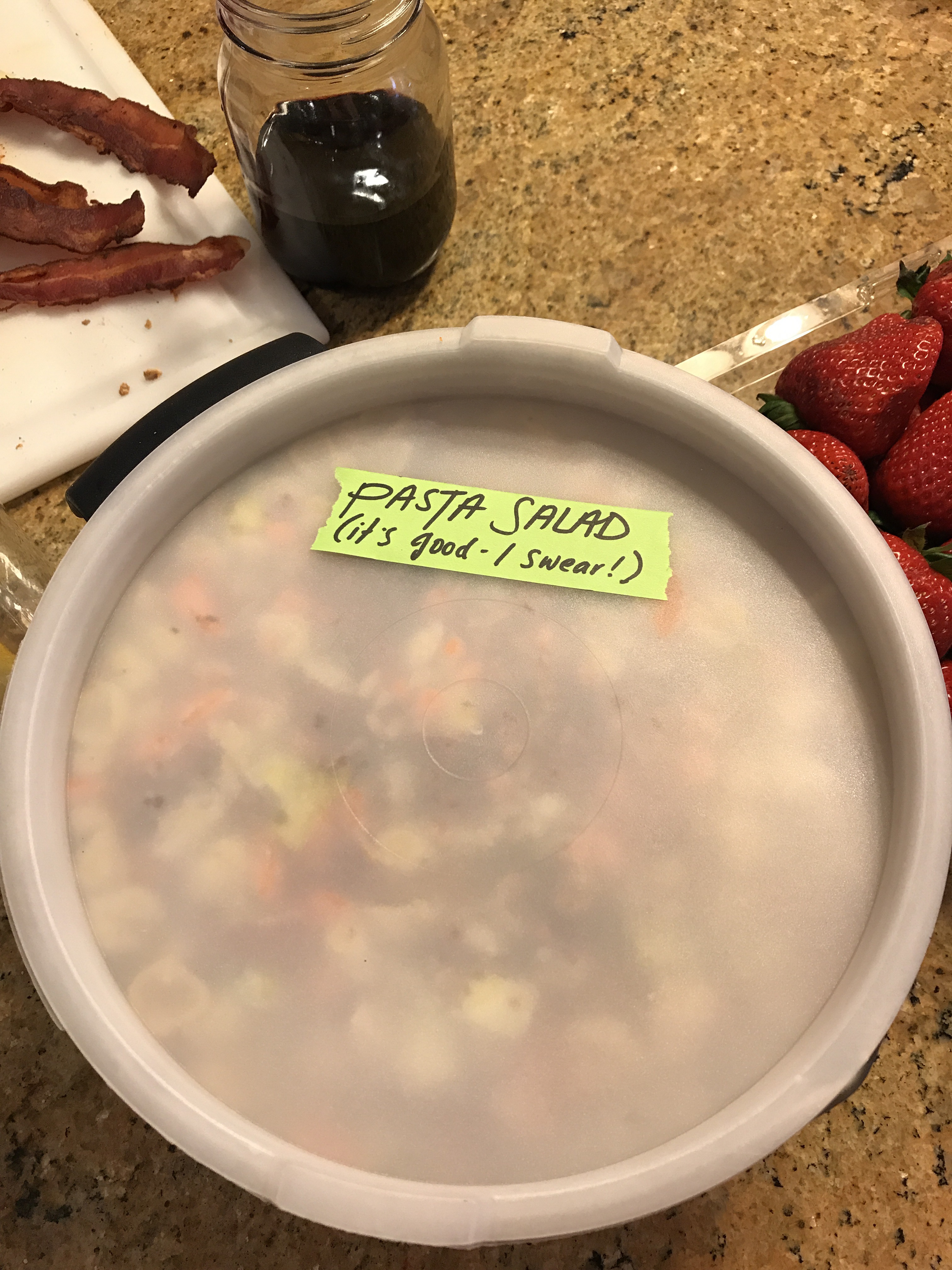 Meals need to be easy and quick. We all bring our own kitchens, but make-ahead meals are key when kids are involved. The easiest: Perfect Pasta Salad